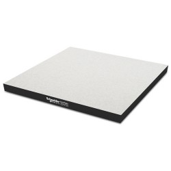 35K panels consist of a 34mm-thick single-ply mineral core formulated with high-density calcium sulphate (nominal 1500kg/m3), bonded with fibres featuring remarkable mechanical resistance and entirely free of wood particles. It is provided with a 0.45mm-thick black plastic edge material that is self-extinguishing and non-creaking.